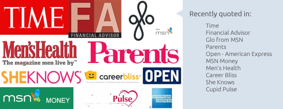 I have published in the areas of trauma, alcohol use, and adult development, and have spoken at international Women’s Leadership conferences on Anxiety, Life Transitions, and Wellness. Additionally, I have appeared on local television broadcasts about relationships, mood regulation, and eating disorders, and have been cited in over 100 online and print publications, including the Associated Press, Time, Forbes, American Express Open Forum, Men’s Health, Parents, and Shape. I am an Expert Contributor for YourTango, where I write regularly about relationship issues, and participate in special projects including a recent video series with noted love expert Helen Fisher, PhD, where we discussed maintaining healthy relationships. My work has been syndicated to TIMEHuffington PostMSNlivingeHarmony, and elizabethst. As a contributing blogger to findapsychologist.org, I write about coping with adversity and life challenges, and was recently honored in the Psychologist Spotlight, which, “features stories, written by psychologists and psychologists-in-training, that reflect their outstanding research and experience in education and practice.” I maintain a weekly blog on my website where I write on balanceproductivityrelationships, and parenting, and am social on TwitterFacebook, and LinkedIn.